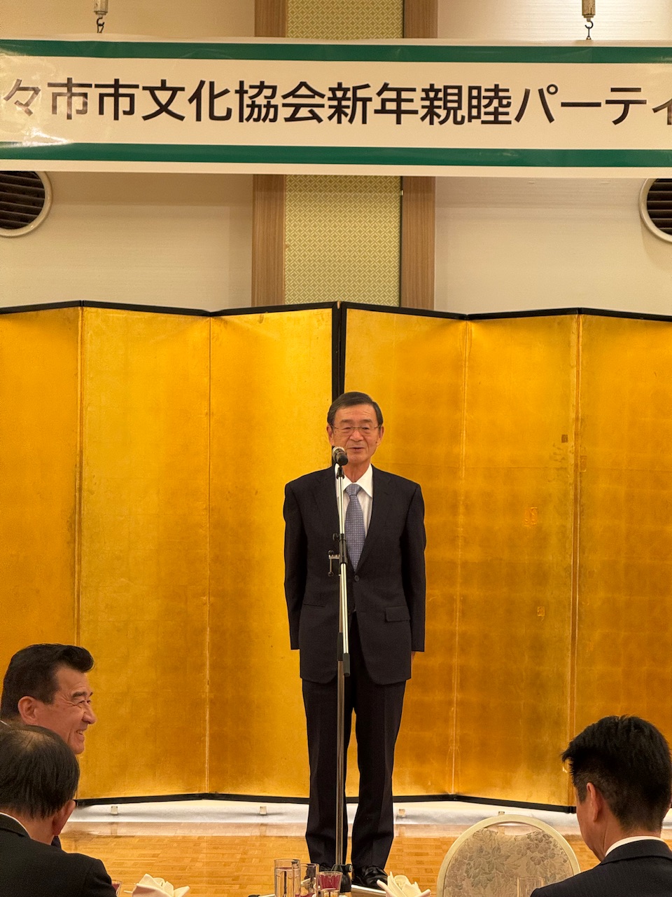 開会にあたり、会長より新年の挨拶が述べられ、続いて来賓の皆さまから温かい励ましのお言葉を頂戴しました。歓談の時間には、参加者同士が交流を深め、日頃の活動や今後の取り組みについて活発な意見交換が行われました。